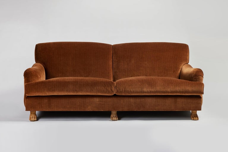Roll Arm Sofa With Tight Back Loose Seat Cushions And Hand Carved Feet For Sale At 1stdibs
