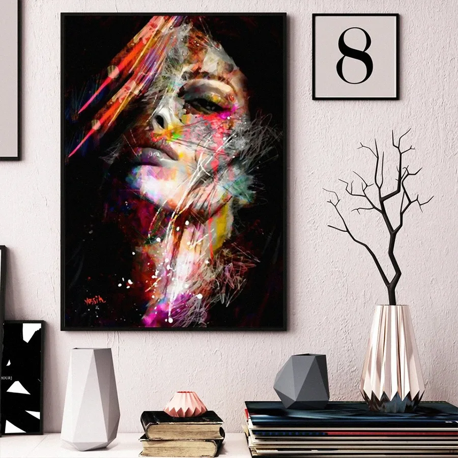 Arte Abstracto De La Pared Del Aceite De La Lona Pintura De La Mujer Cara De Colores Cuadros De La Pared Impresiones Del Cartel Del Hotel Hoteles De Pasillo De La Sala